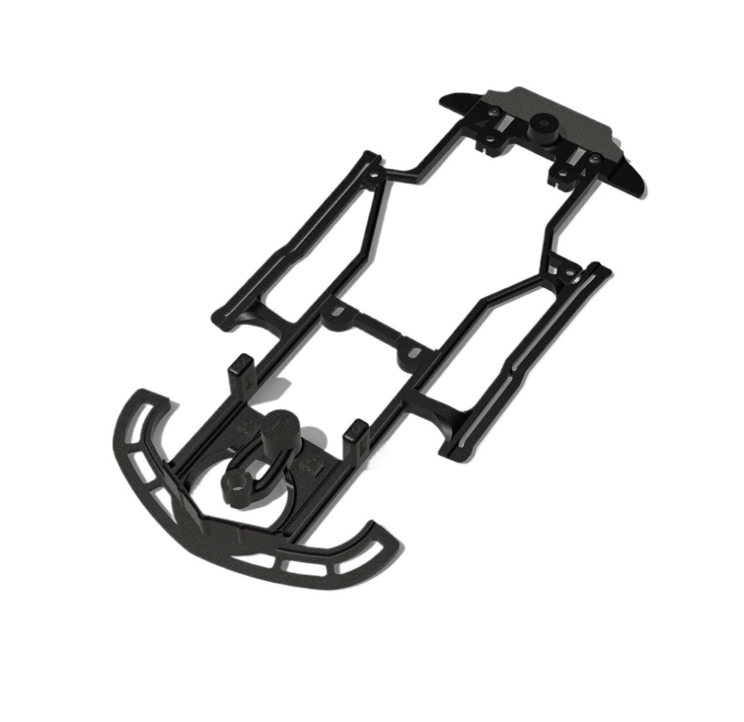 Chasis Oro: El cambio de paradigma. No es simplemente un chasis; es el corazón del coche. Concebido para la élite de la competición y las carreras de larga duración, el chasis Oro es un componente activo que trabaja en cada curva, recta y aceleración. Fabricado en el revolucionario AlfaCarbon V3, ha sido aligerado al máximo sin comprometer su resistencia gracias a su material, y su difusor trasero integrado le otorgan una agilidad y fiabilidad inigualables. No es una simple bandeja donde montar componentes, sino la pieza clave que define el comportamiento dinámico del vehículo, llevando la experiencia de conducción a un nuevo nivel.
