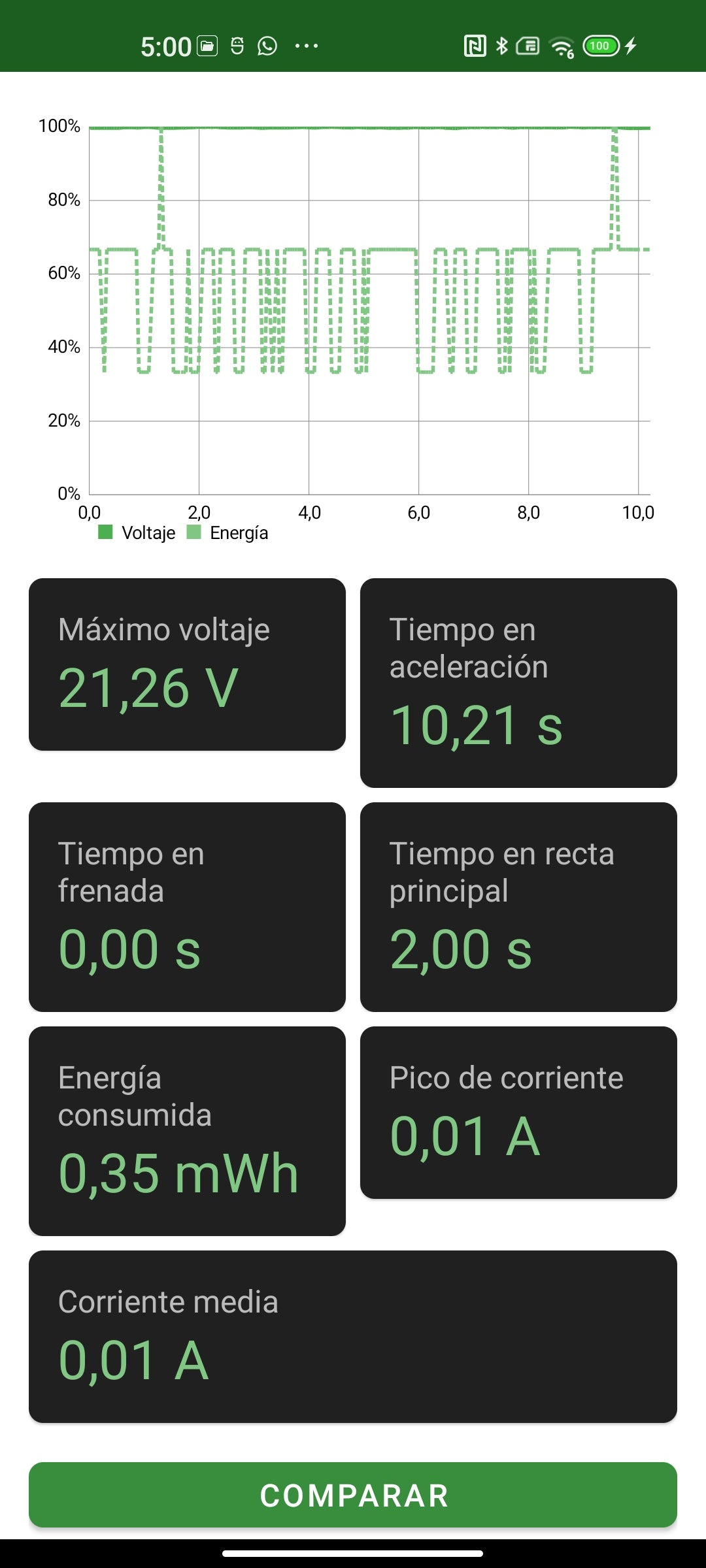 - Voltaje de trabajo: para saber si la pista estaba en las mismas condiciones o no.